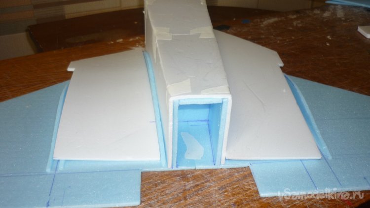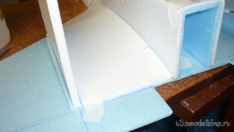При изготовлении отдельных деталей, использую серый, матовый, листовой утеплитель, толщиной 20 мм.