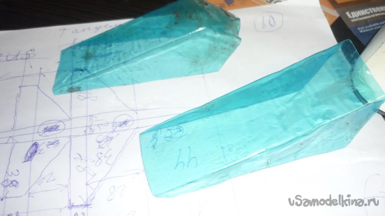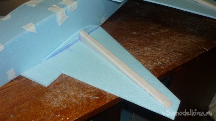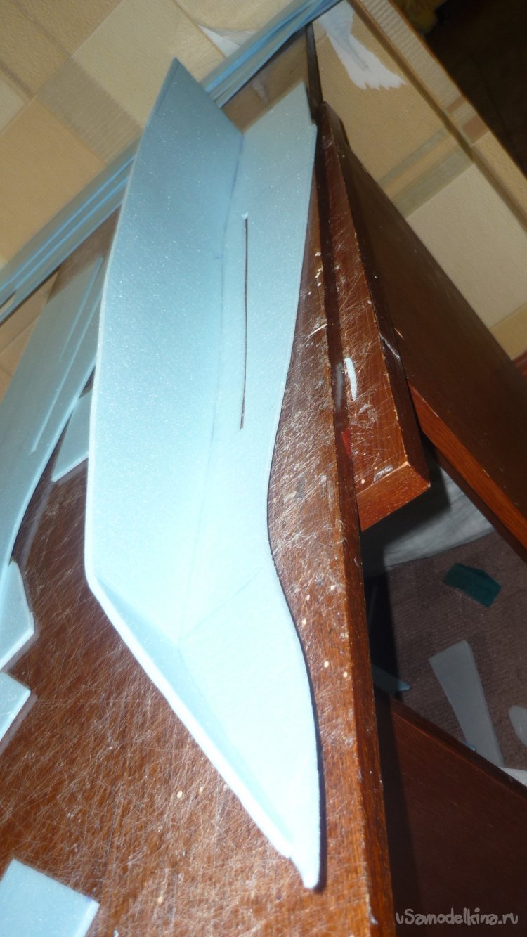 Вырезал из подложки заготовки для киля, склеил в два слоя и смонтировал на место.