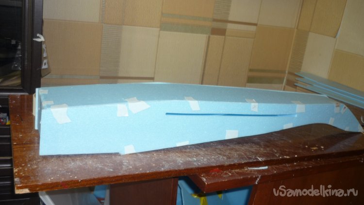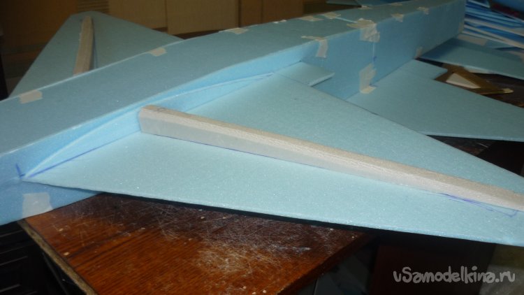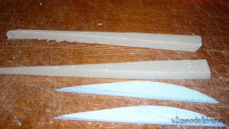В дополнение к корневым нервюрам, переднего, верхнего крыла, из утеплителя вырезал лонжероны