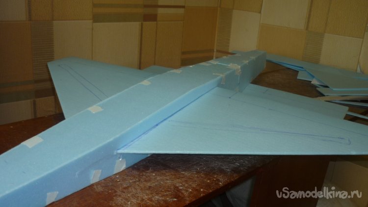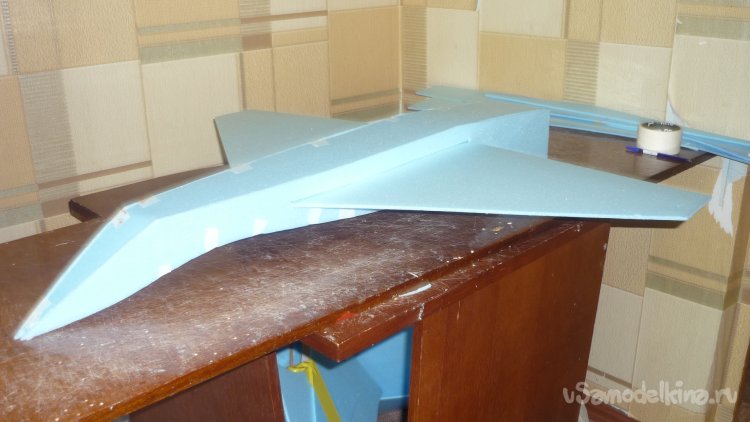 Просматривая созданные мной авиамодели, наткнулся на тандем с треугольным крылом и решил повторить эту модель, но немного изменив конструкцию.