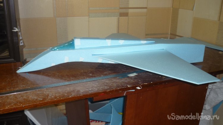 Монтирую внешнюю обшивку на переднее, верхнее крыло.