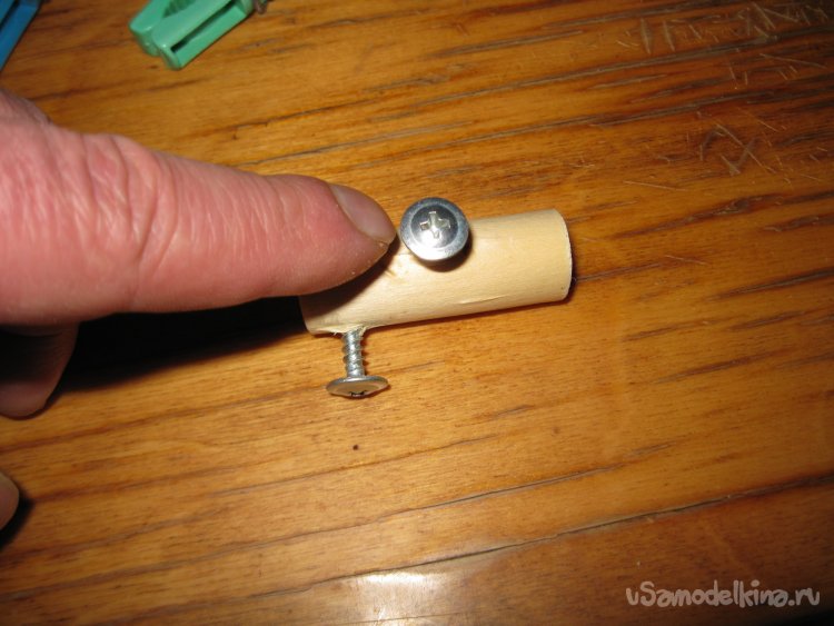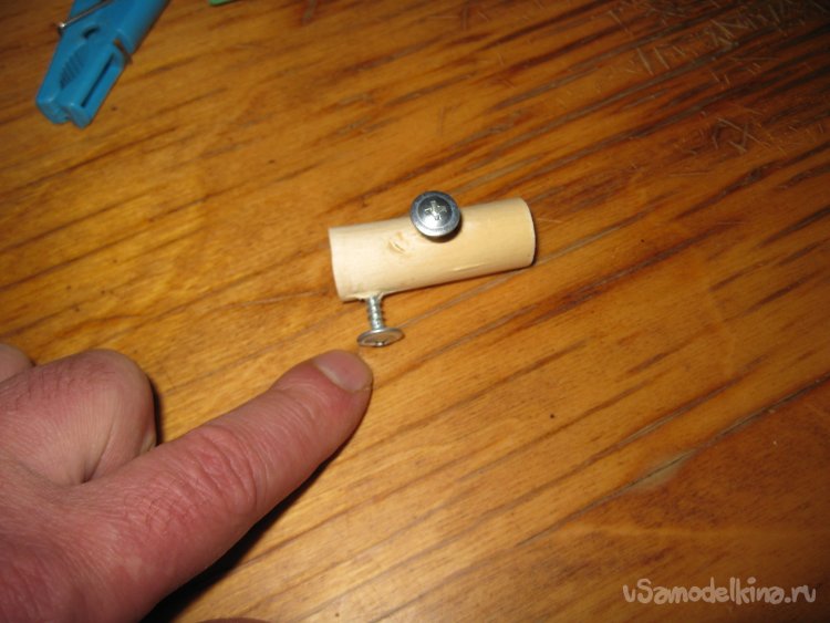 Таким образом, я ввернул в центре деревянного отрезка один шуруп.