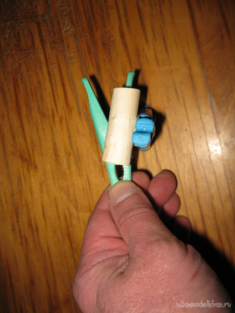 Хотя нужно отметить, что лучше все-таки для этих целей использовать деревянный брусок квадратного сечения. Но я воспользовался отрезком ветки потому, что так было значительно быстрее.