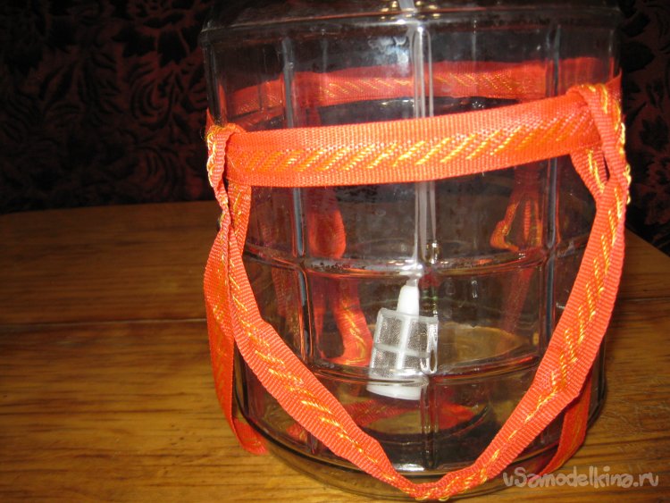 А это переливание вина из пятилитровой бутыли с узким горлом.