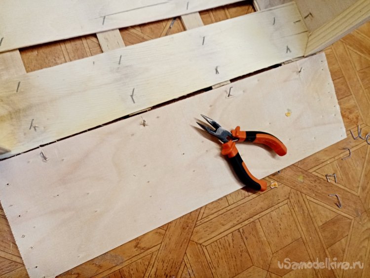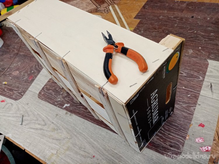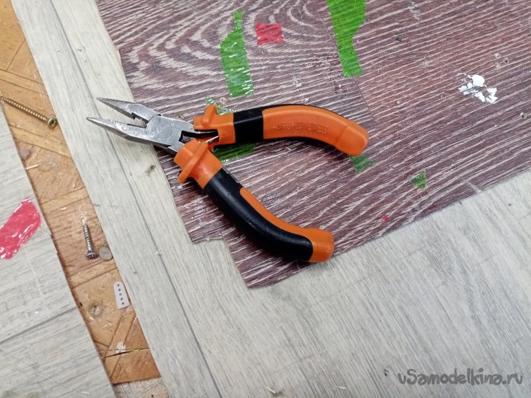 Основным «разборным» инструментов у меня выступают маленькие тонкогубцы. Которым немного подточил носики, для лучшего проникновения под проволочные скобы. Ими скреплены детали ящиков.