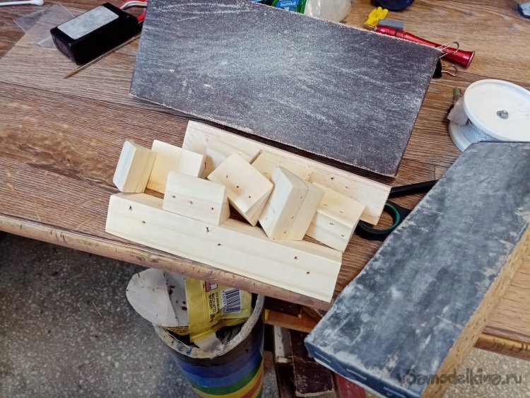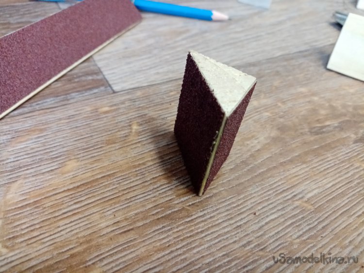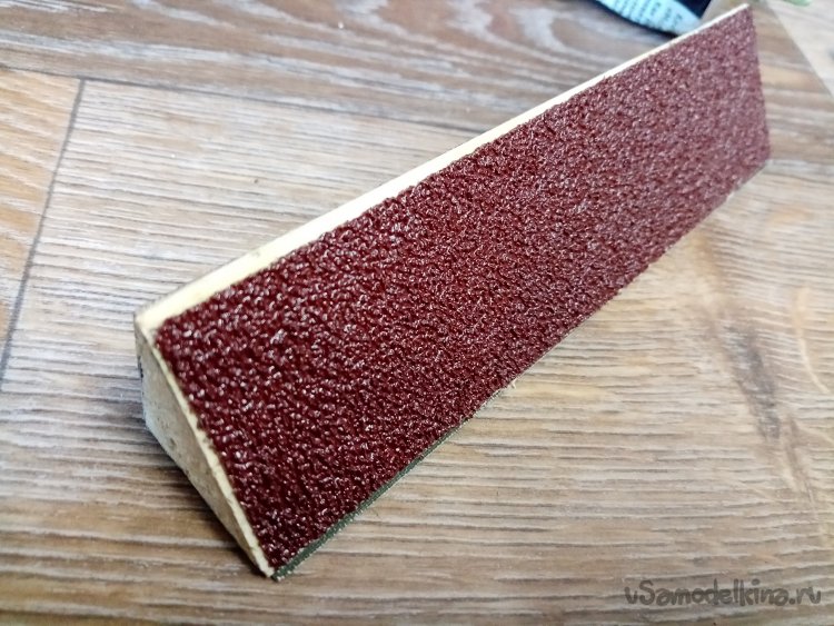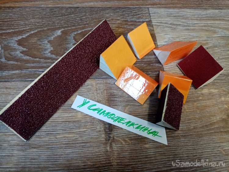 Готовы несколько брусочков с различной шкуркой на гранях. Получилась удобная конструкция. Один угол ровно под 90 градусов и два острых.