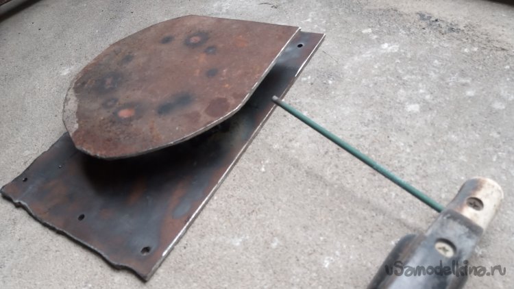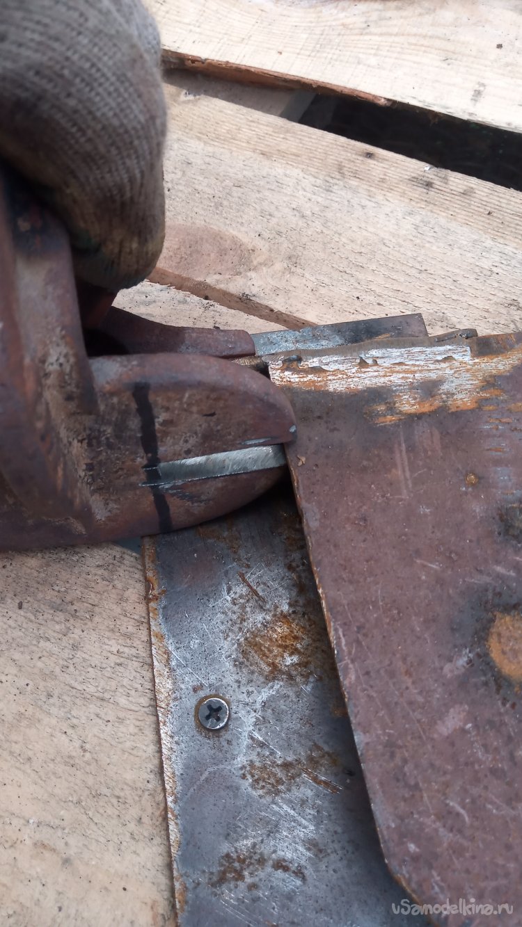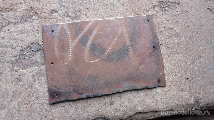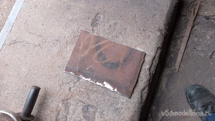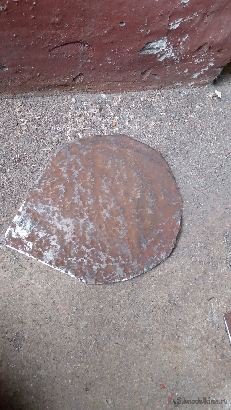 Борта будущей "катушки" должны быть жёсткими, так как будут выступать в роли реборд. В "нужном металлоломе" отыскал ржавый лист толщиной 4 миллиметра, и вырезал из него квадрат, со стороной, большей диаметра кольца на 60 мм, и прямоугольник, вторая сторона которого ещё больше (Даже не измерял на сколько)))) Просто, вторая заготовка получилась длиннее, что мне и было нужно))):