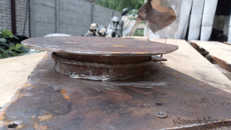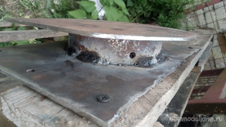 Для этого приварил по центру "катушки" толстую проволоку (6 мм):