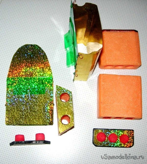 Материалы: пеноплекс (пенопласт), медная проволока 0,7 мм, пластина вспененного ПВХ, тонкий пластик, тонкая бельевая резинка, острозаточенная трубочка, водостойкий клей.