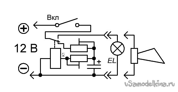 Получилось так – при подаче питания лампа просто светит, а приходит сигнал управления, замыкается SA1 – начинает мигать. На удивление, это их устроило.