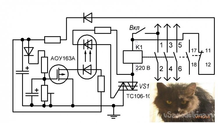 Ну, что же, дорабатываем схему, получилась инверсная логика работы, но это безразлично. Динистор в цепи обмотки толку не дал, гистерезис и так солидный. …