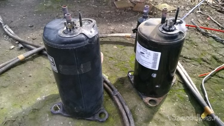 Донором послужил демонтированный из другой сплит-системы с потерей герметичности в радиаторе. Сам компрессор нормальный, но вводы отличаются расположением подключения обмоток и точками крепления амортизаторов к корпусу.