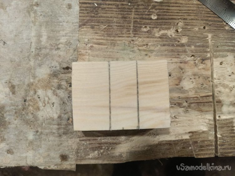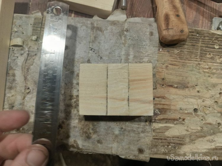 В середине одной заготовке нужно сделать паз для линейки. Разметку рекомендую сделать разметочным ножом.
