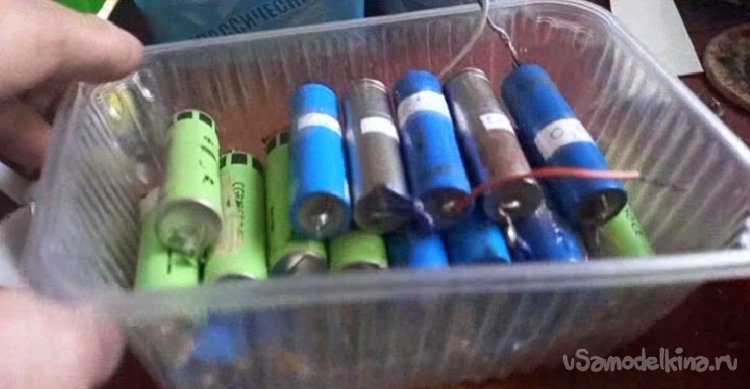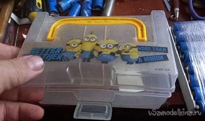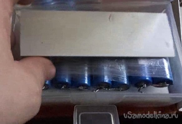 На все про все у меня пошло двадцать три аккумулятора, их спаял последовательно, по две банки и один из трех банок, не хватало ёмкости. Нашлась и пластиковая коробочка под сборку, в которую все аккуратно вложилось, даже люфт отсутствует.