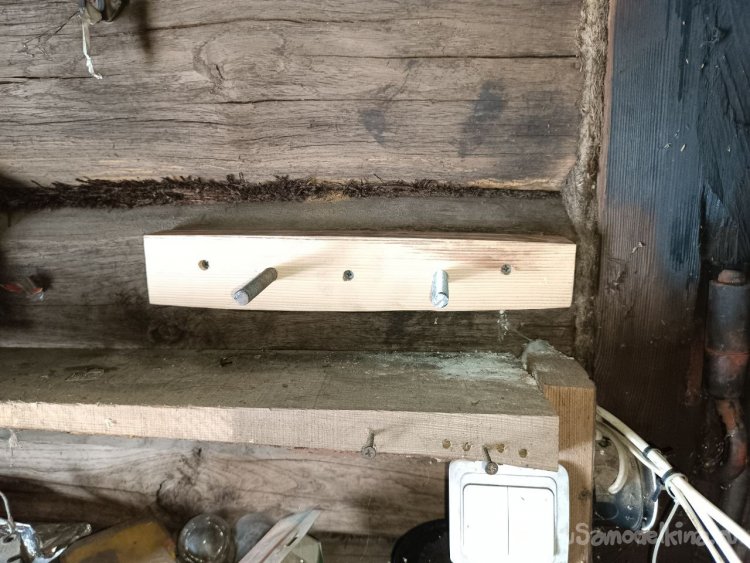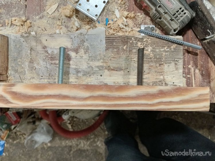 Прикручиваем сначала брусок, и на шпильки вешаем саму полку.
