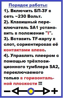 Инструкцию «Порядок работы» рекомендуется приклеить скотчем к задней стенке плеера.