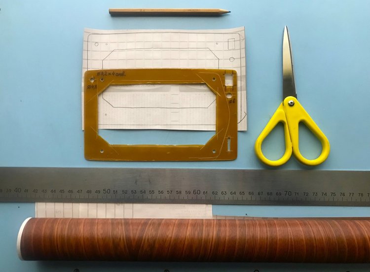 Высверленная передняя стенка корпуса обклеивается самоклеящейся плёнкой «под дерево».