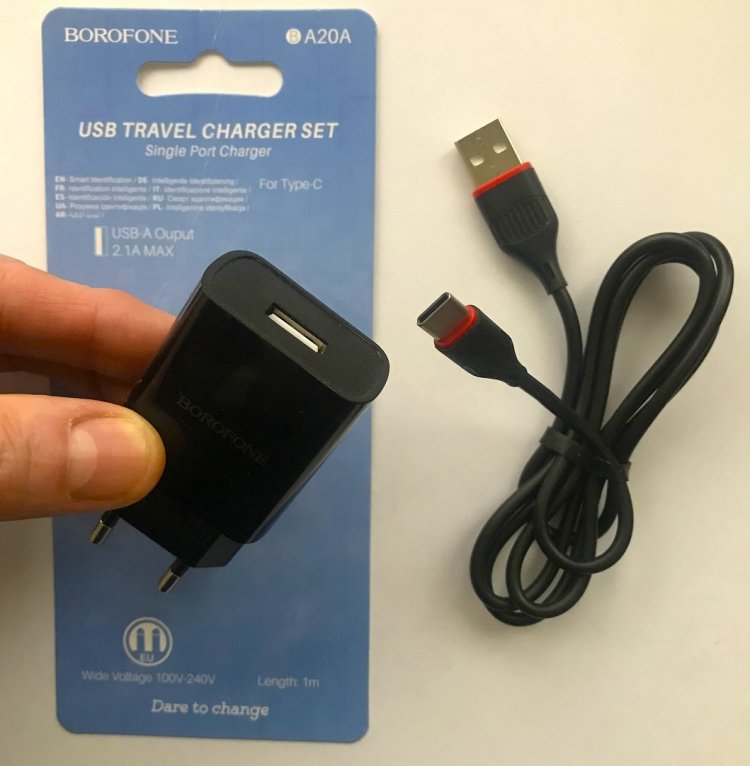 - кабеля USB-A to Micro, например, Borofone BX23, на одном конце которого вилка USB типа A; а на другом - вилка USB типа С;