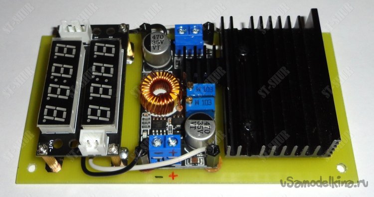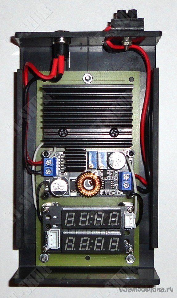 Индикаторные светодиоды режимов работы на силовом модуле, в данном варианте, расположены достаточно неудобно, так как закрываются модулем вольтамперметра. Отсутствует радиатор для ИС.