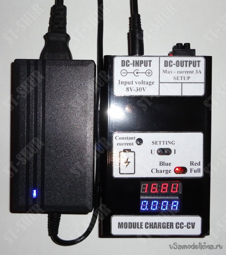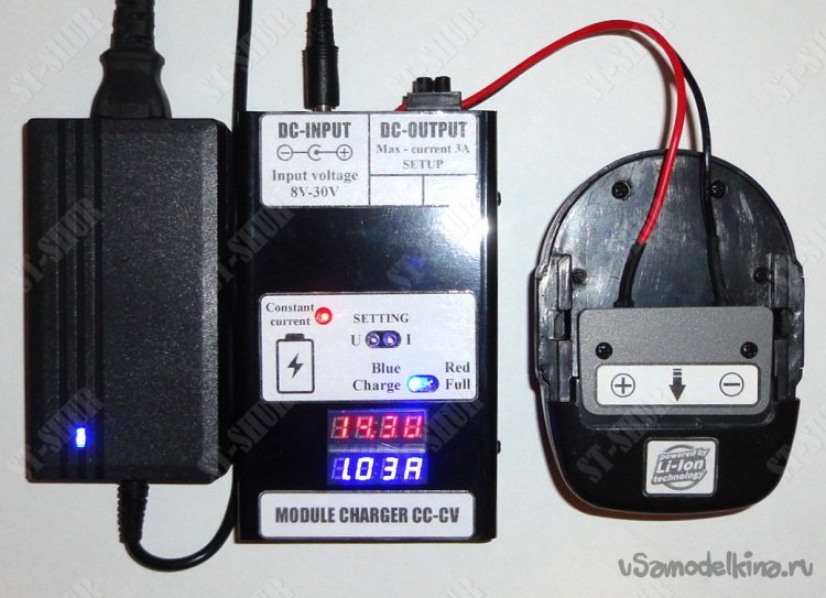 Пока данный блок ЗУ используется совместно с импульсным БП c выходным напряжением 19V и током до 4,7A, что позволяет заряжать Li-ion АКБ в исполнении 1S - 4S (3,6V-14,4V).