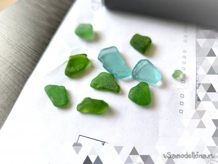 Привезла я тут сувениром из поездки стёклышки. Бутылочное стекло, облизанное волнами Тихого океана. Пригоршню целую, на браслет.