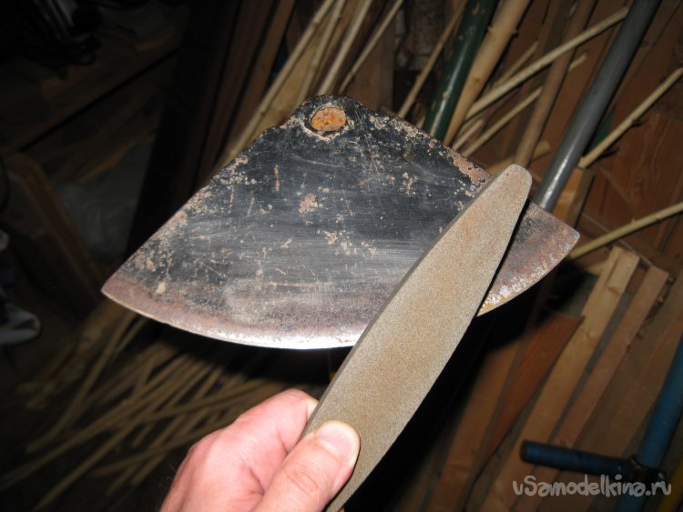 И после этого я могу спокойно приступать к заточке тяпки.