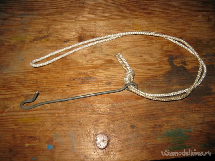 После того, как я сделал крючок, я связал концы веревки толстым узлом, сформировав из него петлю.