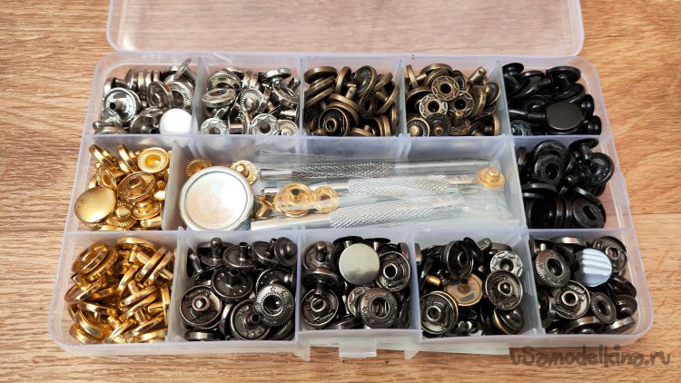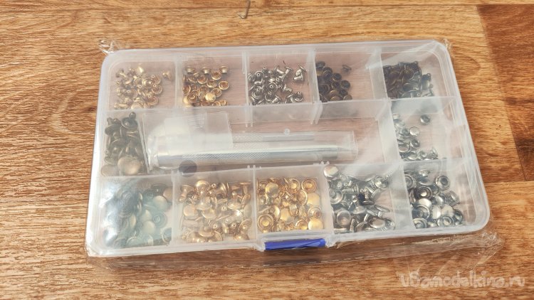 Набор хольнитенов состоит из заклепок разного цвета, инструментов для пробивания и заклепывания. Пробойник в наборе оказался тупой, в остальном набор хороший.