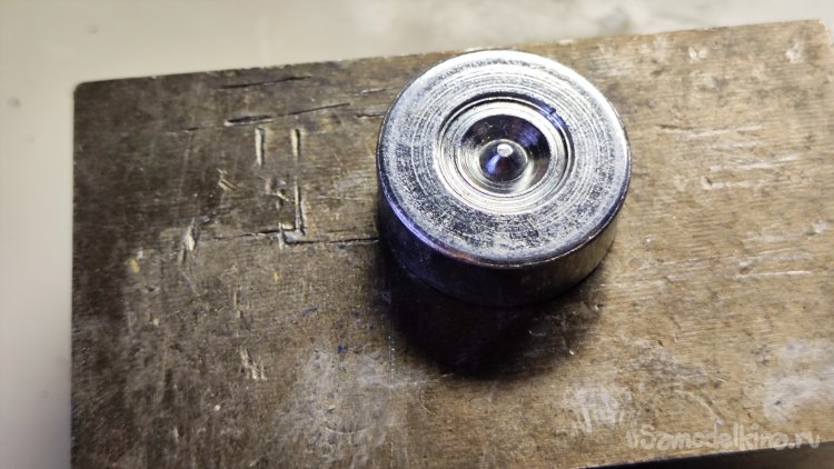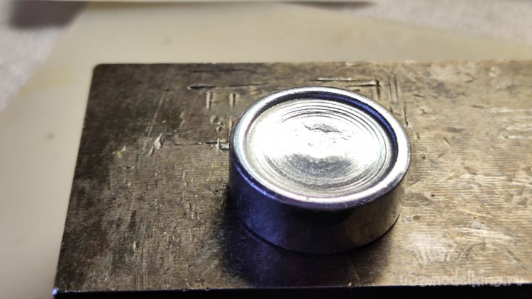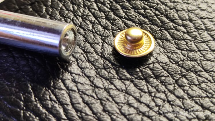 Вторая кнопка немного смялась в сторону при заклепывании. Неприятно. Причем сдвинулась наружная видимая часть кнопки.