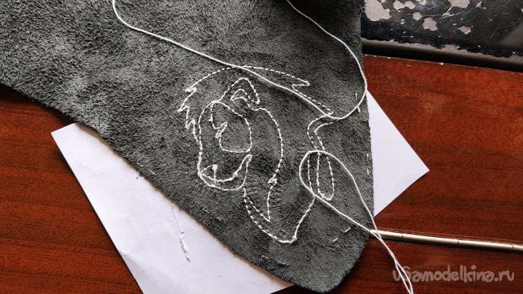 Не стал намечать отверстия, а сразу прошивал по рисунку. Идея отличная. Можно иголку нацелить прямо в линию.