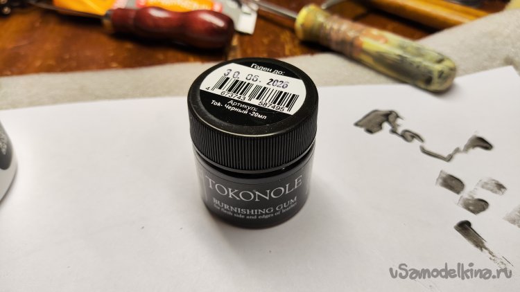 Наносил лак кисточкой. Вот так выглядит урез после высыхания лака.