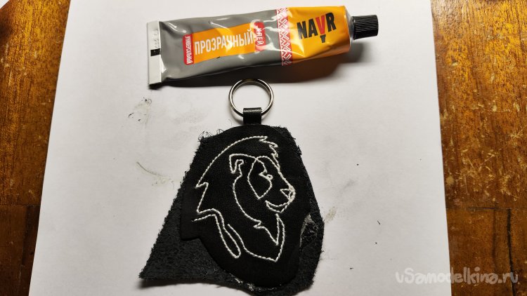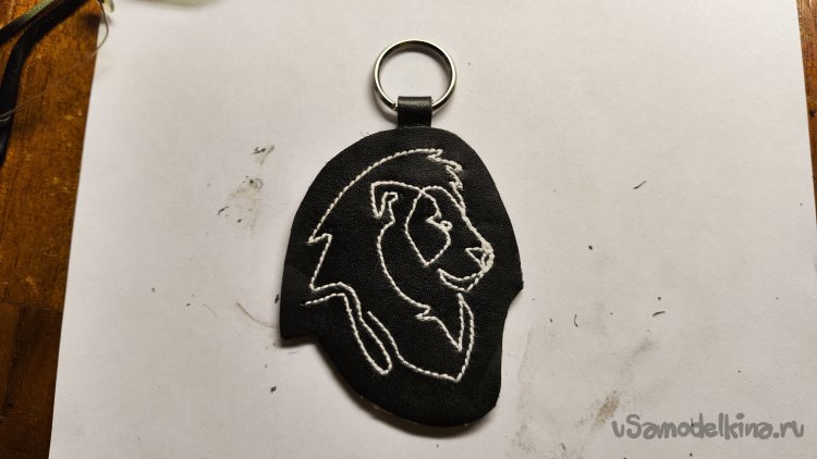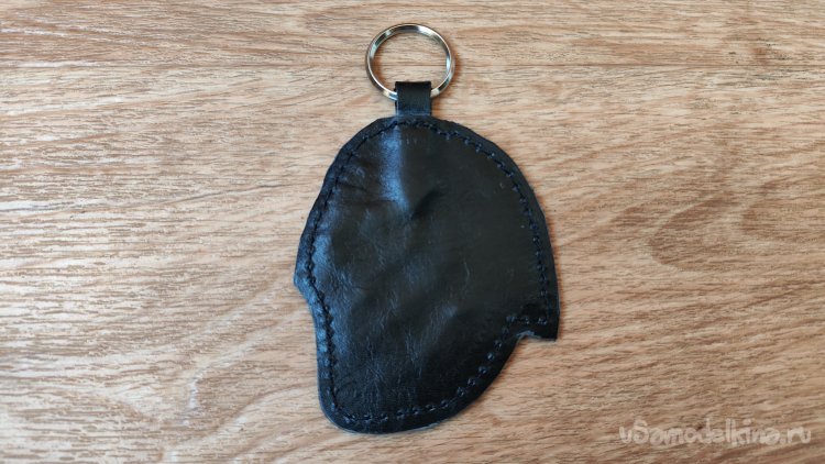 Петельку для кольца делал из отдельной полоски кожи. После вклеивания эта полоска очень выделяется, особенно на обратной стороне брелока.