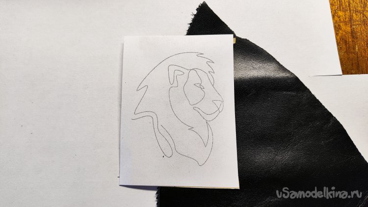 Вроде все, можно радоваться готовым монетницам. Но есть один момент. Торцы кожи или как их правильно называют, урезы, необходимо обработать и привести в красивый вид. Для этой процедуры есть много различных жидкостей и интструментов. И приходит понимание, что современное кожевенное ремесло достаточно затратное. А пока едут жидкости и инструменты займемся изготовлением брелоков. У сестры скоро день рождения, она по гороскопу лев. Я нашел интересную картинку со львом, которую решил воплотить в брелок. Немного расскажу о том, чего не надо делать. Во первых, я решил приклеить распечатанное фото на кожу на двусторонний скотч.