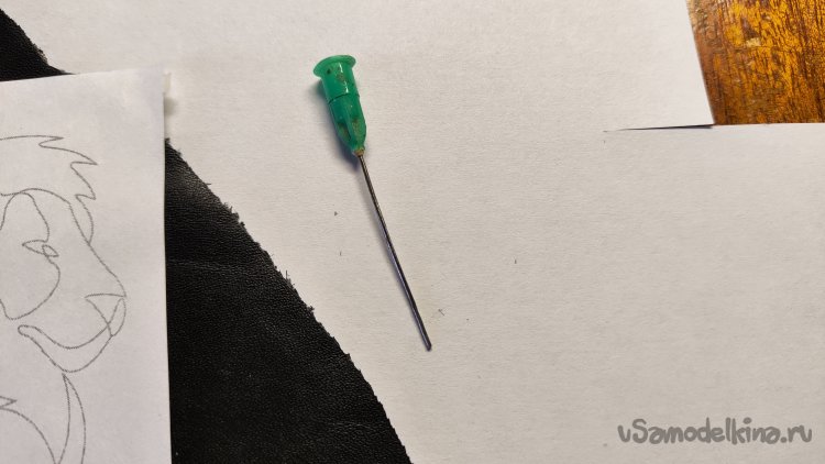 Контур решил набить на коже затупленной иглой от шприца. Сначала накалывал, старался давить сильно, чтобы остался хороший след. Иголка не выдержала таких издевательств, сломалась. Остаток я набивал обломанной иголкой и молоточком, что вышло даже быстрее.