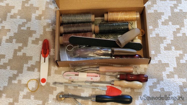 Набор инструментов купил недорогой, без строчных пробойников. Возможно докуплю их отдельно.