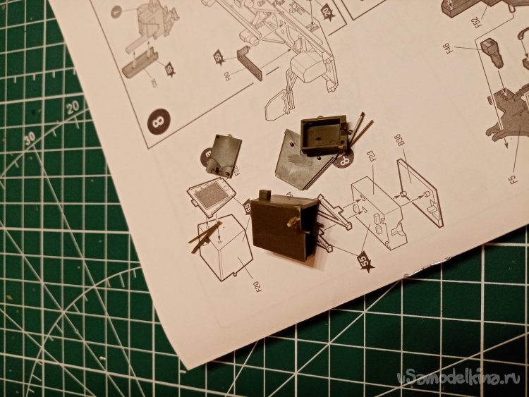 По источникам в интернете не нашел этой модели в таком положении. Хорошо буду оригинальничать. Еще немного разной мелочи и рама полностью собрана. А также некоторые детали кабины и прочего оборудования.