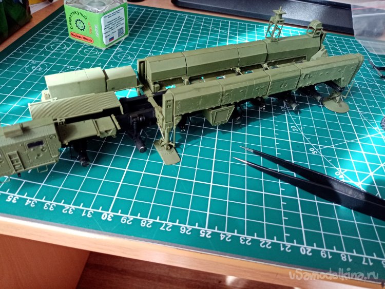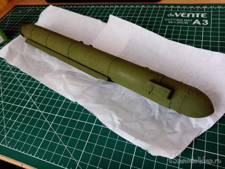 Начинаю ракету. Это наш фаллистический символ, который мы показываем всем нехорошим ребятам. И они хорошо понимают что это такое. Собрал, покрасил, завернул в салфетку от повреждений. На контейнере много трубок и коробок. Но процесс сборки прошел отлично, стыковка деталей хорошая.