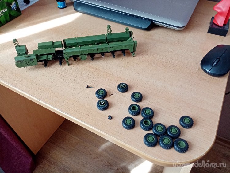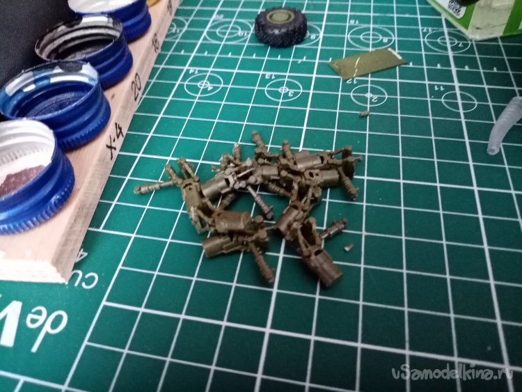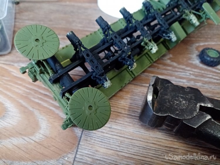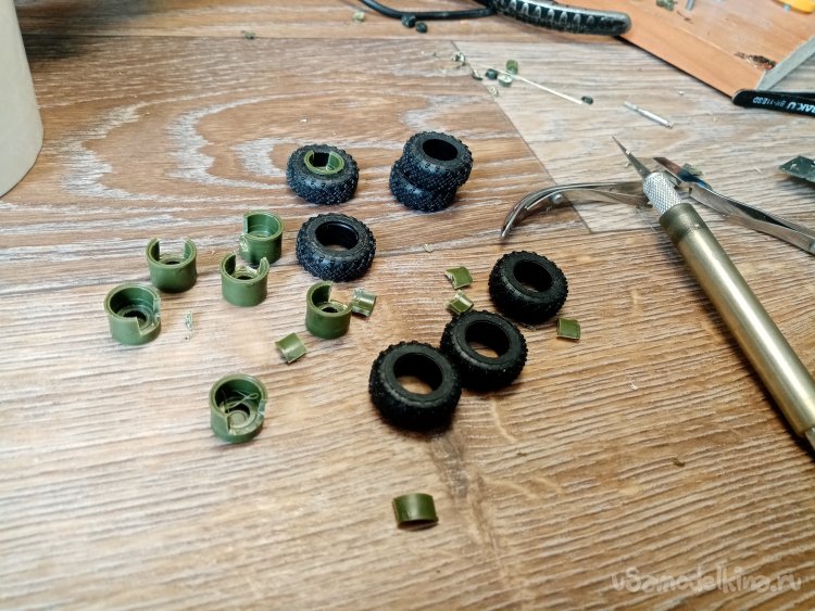 Ненужные элементы слишком хорошо приклеены. Приходится жестоко откусывать прямо на конструкции. Дорабатывать приходится и колесные диски уменьшая высоту элементов.