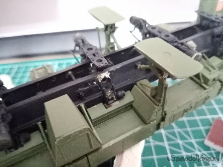 И еще одна ж-па прилетела. Когда носился с покраской элементов. Потерял один элемент конструкции. Но проблема небольшая, из ластика изготовил подобное, окрасил и установил на место. Малая проблема, но досадно.