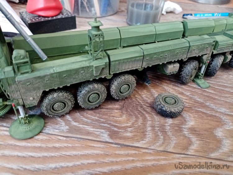 После полной сборки начинаю марать подвеску и колеса моей любимой глиной. Это краска от раскрасок по номера. Как оказалась очень подходит при работе «сухой кистью».