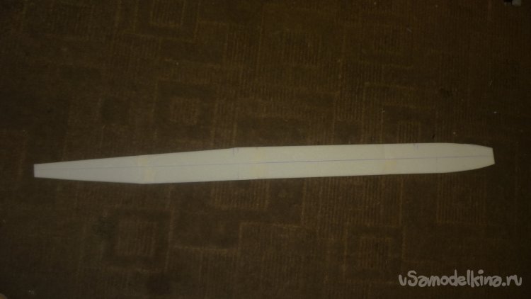 Самой первой деталью, которую я вырезал, стало - днище фюзеляжа и нижние обшивки крыла Эти детали вырезаются из потолочки.