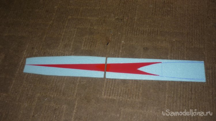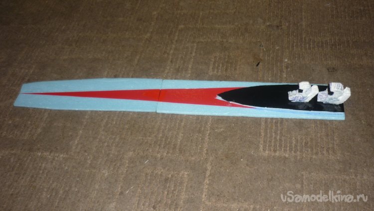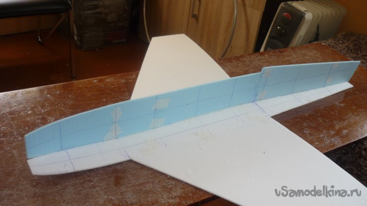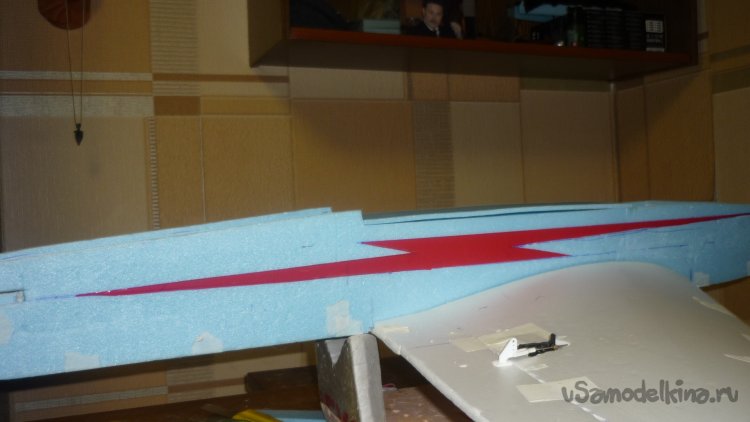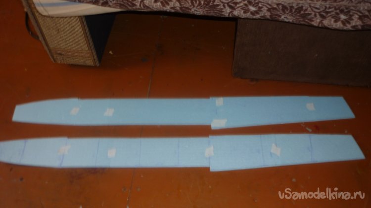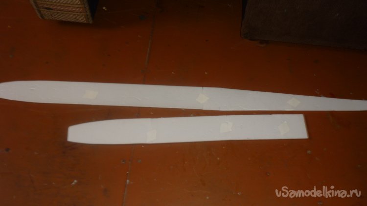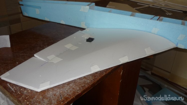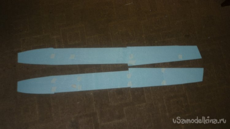 Вырезаю элероны и навешиваю их на бумажный, малярный скотч.
