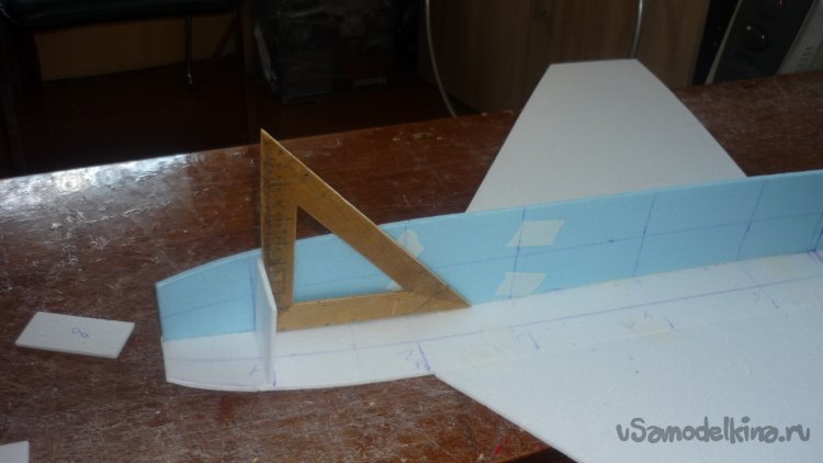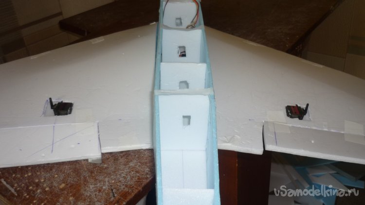 Размечаю места установки сервомашинок управления элеронами.