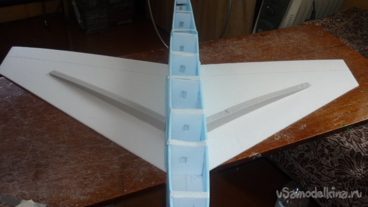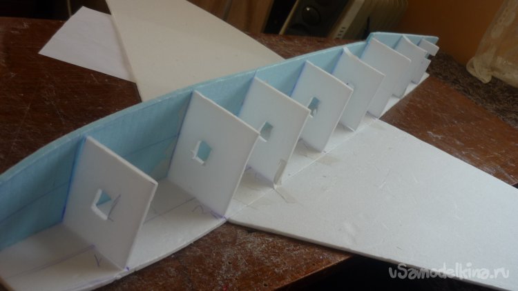 Из потолочки вырезал заготовки верхней стенки фюзеляжа .