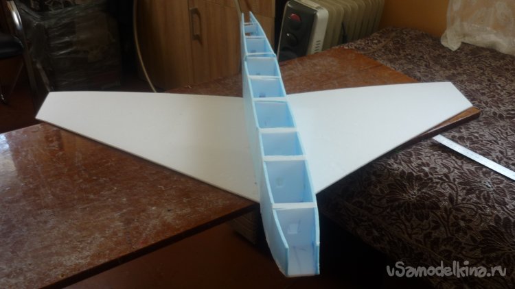 Размер модели выбрал такой, что бы обшивка половины крыла уместилась на потолочной плитке, размером 500 х 500 мм.