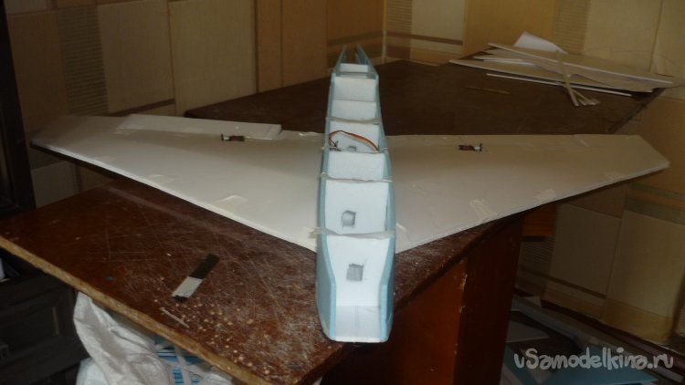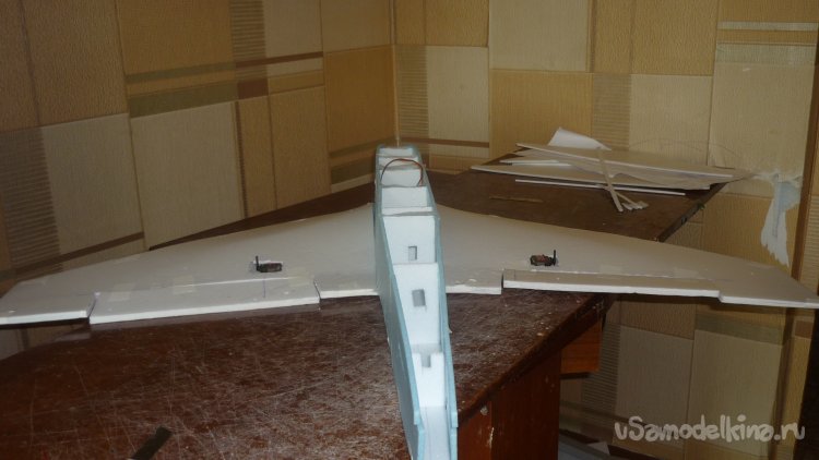 Монтирую внешнюю обшивку крыла, устанавливаю сервомашинки.