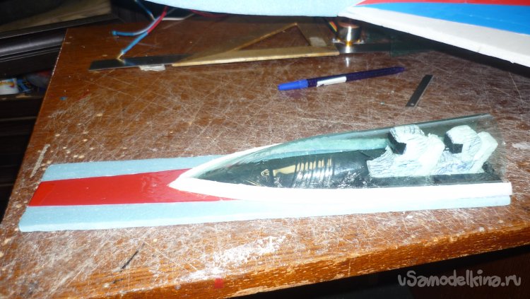 Вырезал из пенопласта фигурки пилотов, вклеил в кабину.