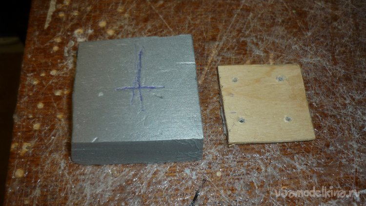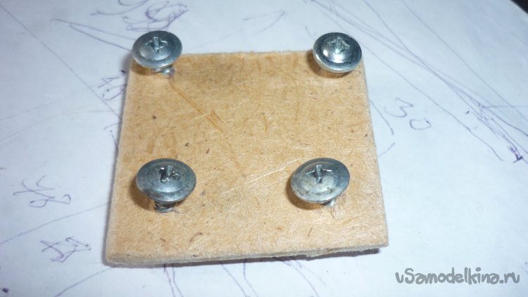 Для установки шасси подготовил кусочек 3 мм фанеры с саморезами.