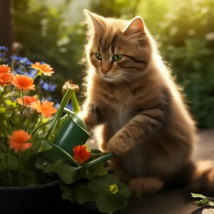 Полуавтоматический полив цветов с помощью котика и лейки довольно странной конструкции, нарисованной ботом Алисой, приводится на рисунке 09: