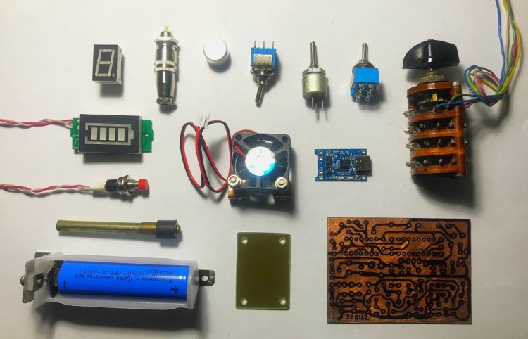 Основные детали, использованные для изготовления УдПЦ2. В центре – кулер (вентилятор) размерами 30х30х10 мм.